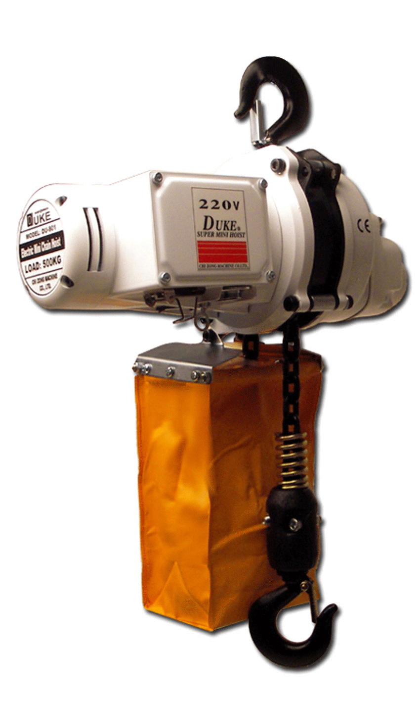 There is a limit switch device for lifting heavy objects up and down, which automatically stops the motor to prevent the chain from exceeding and ensure safety.